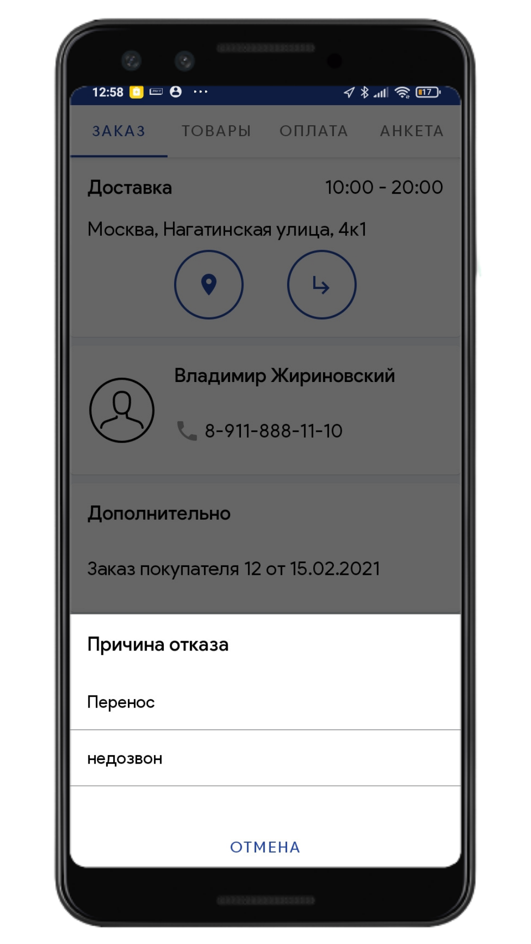 Индивидуальный план работ в телефоне курьера: список заявок, маршруты, комментарии логиста